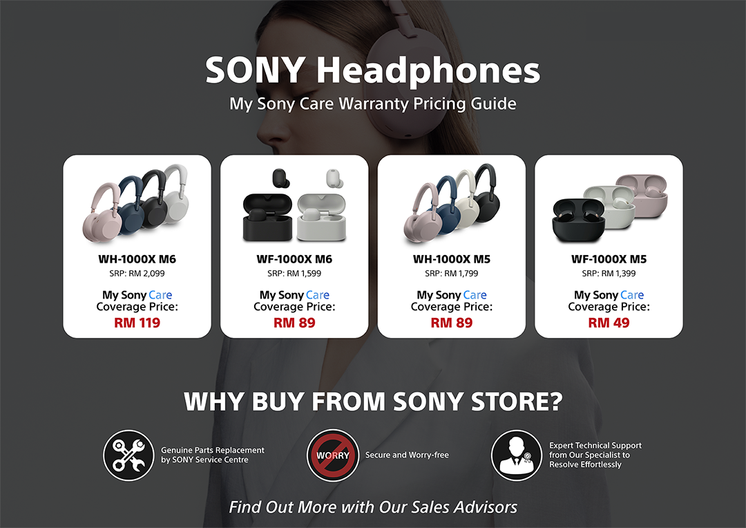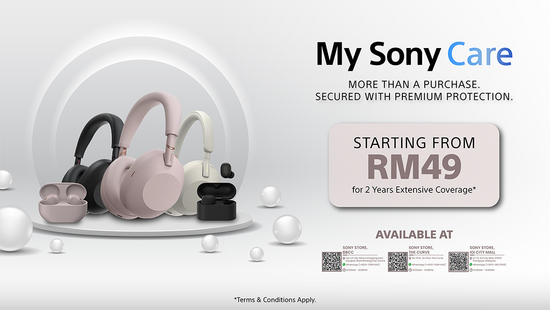 My Sony Care can be purchased at Sony Store BBCC, Sony Store The Curve and Sony Store IOI City Mall.