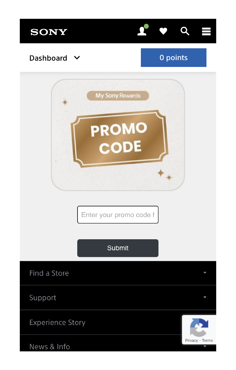 - Scan above QR Code to and on top right click My Sony Rewards > Sign up / Login